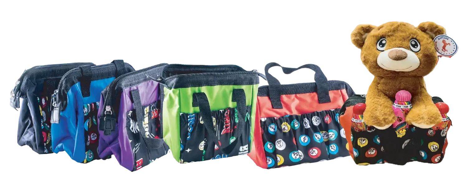 Keep your bingo daubers organized in this small, durable, washable fabric bag with 6 pockets.